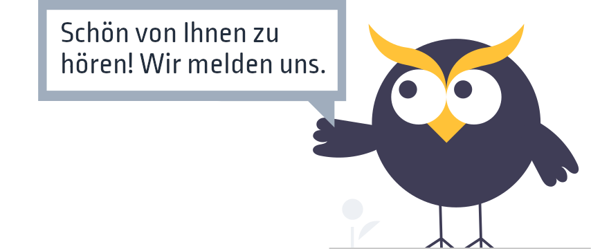 In Kürze erhalten Sie eine Bestätigungsmail mit Ihrer Anfrage. Um diese zu bearbeiten, nehmen wir uns etwas Zeit und melden uns zeitnah bei Ihnen.