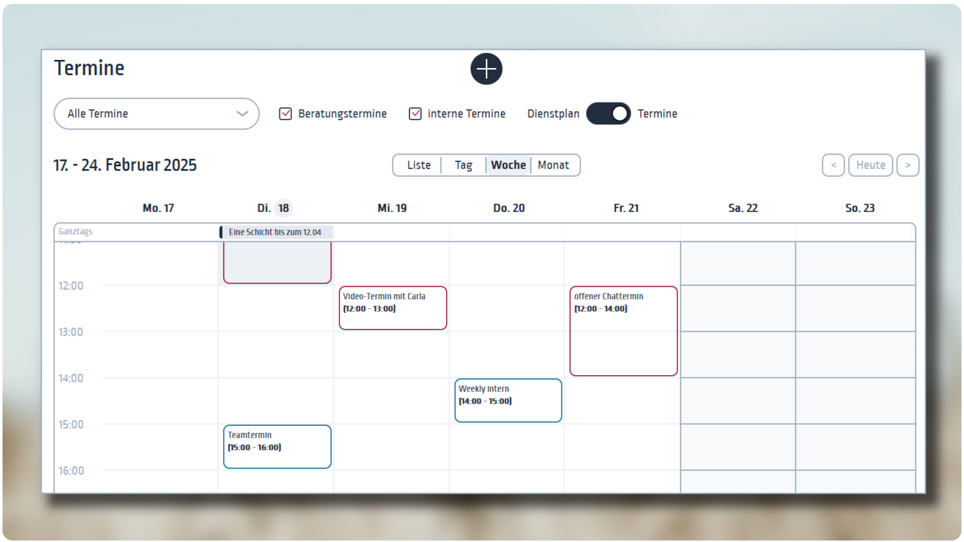 Das Terminmodul ist immer in unseren Chat- und Video-Modulen enthalten – eine separate Buchung ist nicht erforderlich.